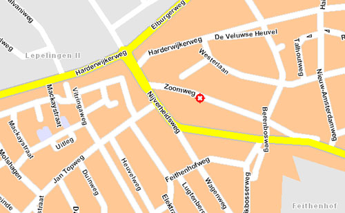 Neem afrit 14 Elspeet/Nunspeet. Ga richting Nunspeet. Over het spoor links aanhouden. Op de rotonde neemt u de 2e afslag. U rijdt dan op de Nijverheidsweg. Na ongeveer 30 meter rechts aanhouden. U blijft op de Nijverheidsweg. Na ongeveer 500 meter neemt u de 4e afslag rechts (Berenbosweg). Na ongeveer 30 meter neemt u de 1e afslag links (Zoomweg). Na ongeveer 100 meter links. Aankomst Zoomweg 55.